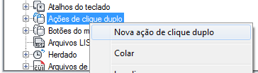 - Na guia Personalizar, no painel Personalizações em <nome do arquivo>, clique com o botão direito do mouse no nó Ações de clique duplo. Clique em Nova ação de clique duplo.