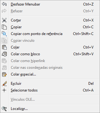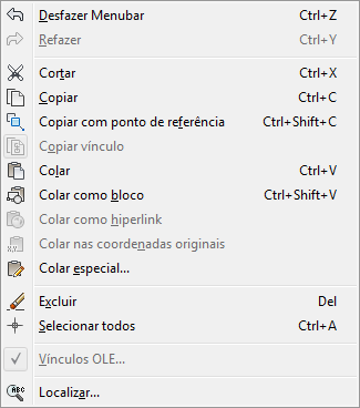 O exemplo a seguir mostra o item de menu dos vínculos OLE no menu Editar marcado com uma marca de seleção e a imagem realçada do item de menu Copiar vínculo com uma borda em torno do mesmo.