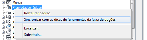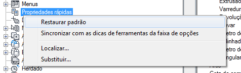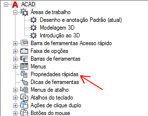 - Na guia Personalizar interface do usuário, no painel Personalizações em <nome do arquivo>, selecione Propriedades rápidas.