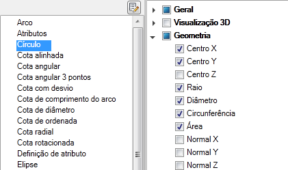 - No painel Propriedades, selecione as propriedades que deseja exibir para um tipo de objeto na paleta Propriedades rápidas.