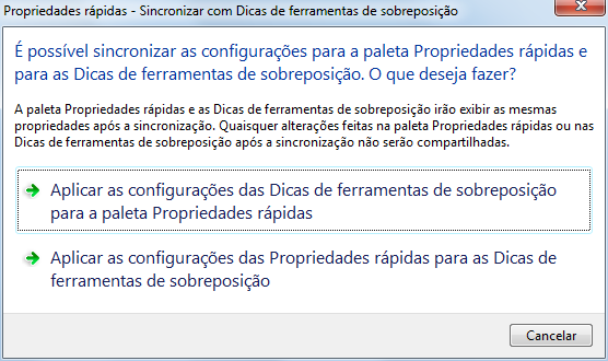 Para sincronizar as Propriedades rápidas com dicas de ferramentas de sobreposição