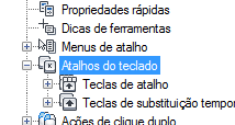 - Na guia Personalizar, painel Personalizações em <nome do arquivo>, clique no sinal de mais (+) junto ao nó Atalhos do teclado para expandi-lo.