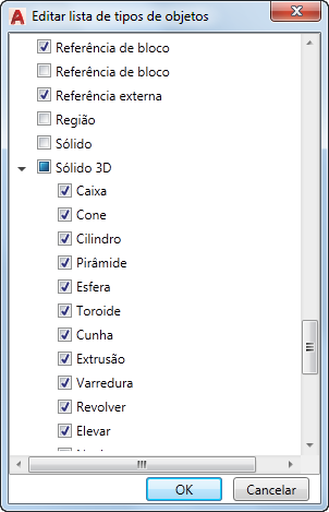 Se um objeto estiver selecionado, as propriedades desse tipo de objeto serão exibidas em uma dica de ferramenta de sobreposição quando o cursor passar sobre um objeto do mesmo tipo. Limpe a marca de seleção ao lado de um tipo de objeto para remover o suporte para esse tipo de objeto das dicas de ferramentas de sobreposição.