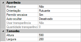 Nota: Para especificar que uma janela deve ser ancorada, defina Orientação como Esquerda, Direita, Superior ou Inferior e defina Ocultar automático como Ativado.