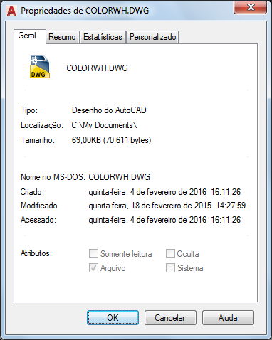 Exibe informações somente leitura sobre o arquivo de desenho, extraídas do sistema operacional.