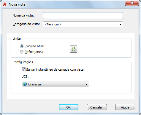 Para vistas de modelo e layout, especifica um UCS a ser salvo com a nova vista.
