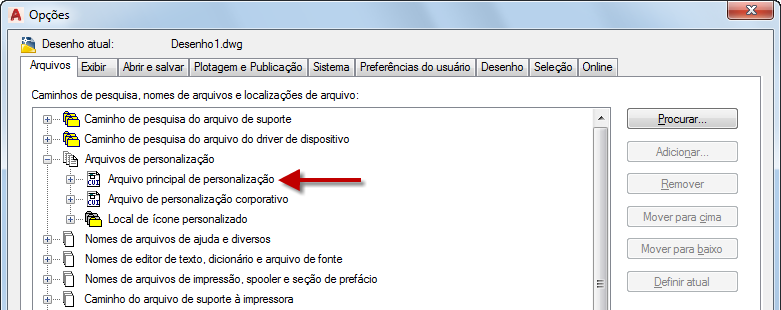 As alterações feitas no perfil de usuário são armazenadas no Registro do Windows e são migradas. Nota: Não está disponível no AutoCAD LT.