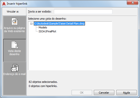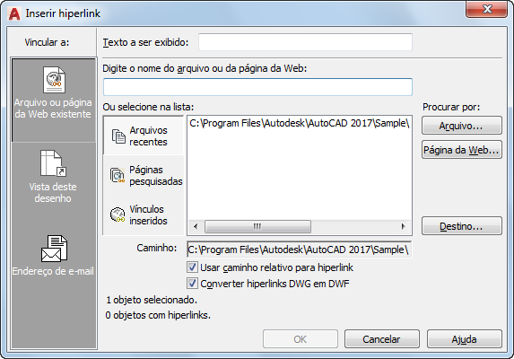 Exibe o caminho do arquivo associado ao hiperlink. Se a opção Use Relative Path for Hiperlink estiver selecionada, será exibido somente o nome do arquivo. Do contrário, o caminho completo e o nome do arquivo estarão relacionados.