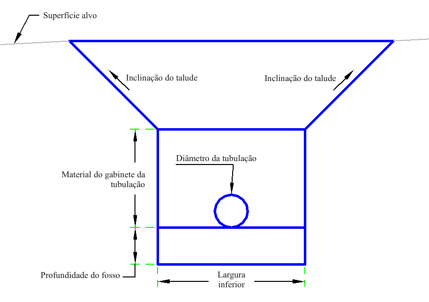 | Profundidade do material do gabinete da tubulação | Profundidade do fosso da tubulação sobre a geratriz da tubulação. | Numérico, positivo |