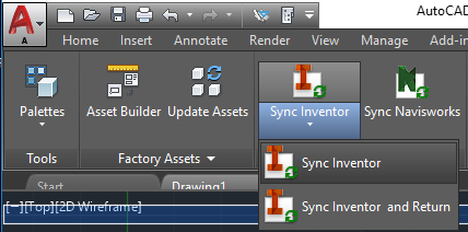 De maneira semelhante, quando você opta por sincronizar o Inventor com o AutoCAD, o arquivo de projeto do Inventor é sincronizado com o arquivo DWG.