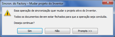 Como você pode ter outros arquivos de projeto do Inventor abertos quando você inicia uma sincronização do AutoCAD, selecione Utilizar para definir o projeto ativo do Inventor antes de sincronizar para garantir que o recurso de dados seja sincronizado com o arquivo de projeto do Inventor indicado nessas configurações.