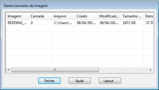 A caixa de diálogo Gerenciamento de imagem exibe informações sobre a imagem selecionada.