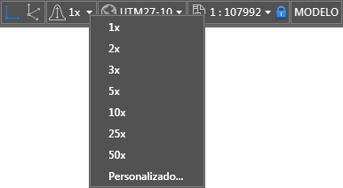 - Na barra de status abaixo do mapa, clique na seta para baixo junto a Exagero vertical.