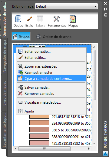 No Gerenciador de exibição, clique com o botão direito do mouse na camada de superfície para criar curvas de nível.