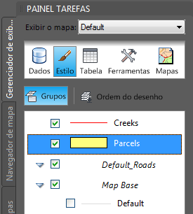 A guia Gerenciador de exibição exibe as camadas do mapa atual.