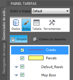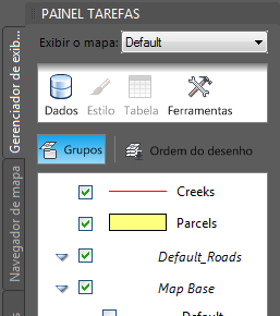 A guia Gerenciador de exibição exibe as camadas no mapa atual.
