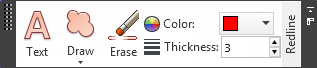 O painel Redline Tools na guia Review permite marcar pontos de visão e resultados de interferência com anotações de linha de marcação. Quando você cria uma linha de marcação, o ponto de vista associado é salvo automaticamente.
