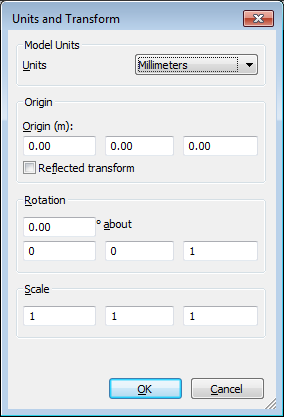 - Na caixa de diálogo Units and Transform, selecione o formato requerido na lista suspensa Units.