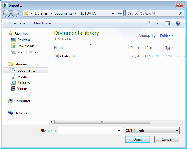 e selecione Import Clash Tests .