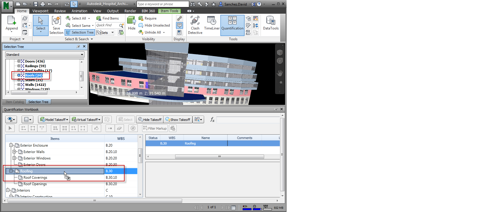 O levantamento de modelo utiliza as propriedades incorporadas nos arquivos de origem do projeto para criar dados de levantamento. Extrai os objetos a partir do modelo e exibe-os como itens na pasta de trabalho Quantification.
