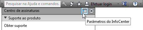 O InfoCenter é um recurso usado em diversos produtos da Autodesk. Consiste em um conjunto de ferramentas no lado direito da barra de título que permitem acessar diversas fontes de informações relacionadas aos produtos. Dependendo do produto da Autodesk e da configuração, estas ferramentas podem ser diferentes. Por exemplo, em alguns produtos, a barra de ferramentas do InfoCenter também pode incluir um botão Sign In para serviços do Autodesk 360 ou um link para o Autodesk Exchange.