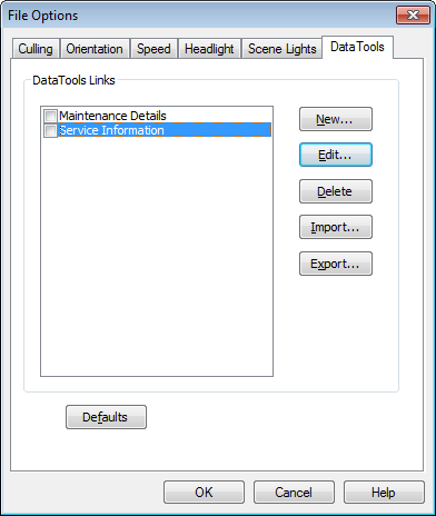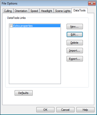 - Na caixa de diálogo File Options , guia DataTools , clique no link que deseja configurar na área DataTools Links , e clique no botão Edit.