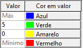 Apresenta os resultados da análise em faixas de cores específicas dos valores máximos para os mínimos. ![]() |
