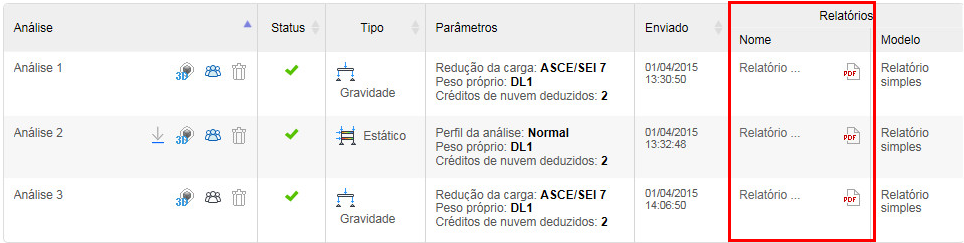 Os resultados também estão disponíveis no formato de relatórios de análise predefinidos no site do Autodesk® 360 Structural Analysis. É possível visualizar o relatório em formato HTML ou PDF. Também é possível fazer o download e o salvar localmente.