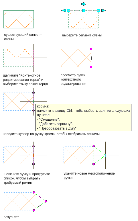 Данная процедура применяется для добавления вершины к кромке компонента стены при помощи ручек кромки.