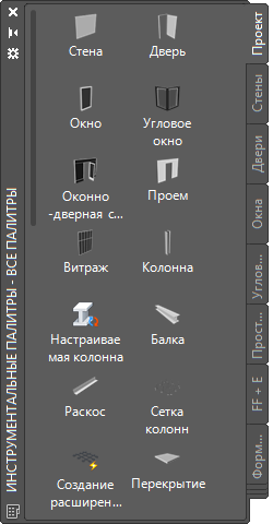 | каталог инструментов проектирования в Библиотеке компонентов, | пакет инструментов витражей и блоков витражей. |
