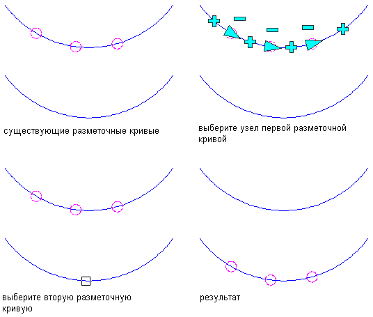 Эта процедура используется для перемещения разметочной кривой с одного объекта на другой. В этой операции разметочный режим сохраняется. Если разметочная кривая была вставлена изначально с равномерно распределенными узлами, то узлы остаются равномерно распределенными на новом объекте.