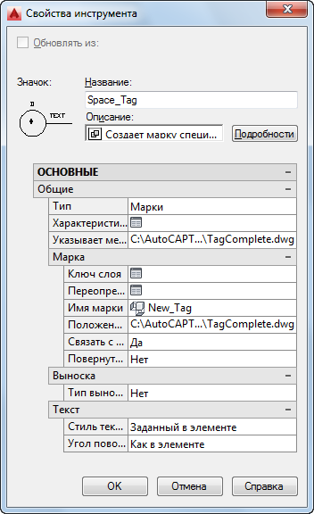 | создать инструмент из марки на чертеже, | выберите марку и перетащите ее на панель инструментов. |