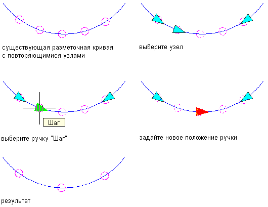 Изменение расстояния между узлами на разметочной кривой с помощью ручек