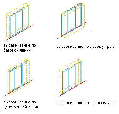 4. Задайте способ привязки витража - по левой стороне, по правой стороне, по осевой линии или по базовой линии стены, из которой создана эта витраж.