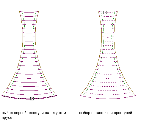 "Линии". Для обозначения краев лестницы можно использовать только линии, легкие полилинии или дуговые сегменты, пересекающие все проступи.