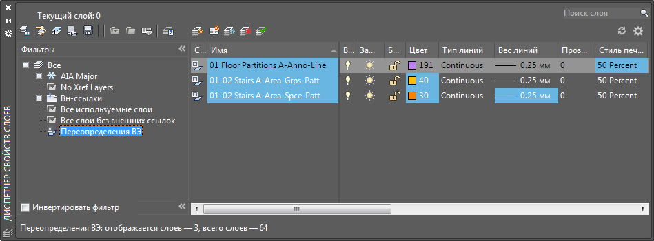 - В режиме просмотра структуры, где перечислены все слои с переопределениями видовых экранов, отображается готовый фильтр "Переопределения видовых экранов".