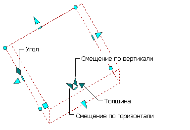 Ручки угла, смещения по горизонтали и смещения по вертикали для перекрытий