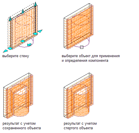 Данная процедура используется для того, чтобы создать тело-модификатор и добавить его к стене. Можно применить модификатор к однокомпонентной стене или к компоненту в многокомпонентной стене.