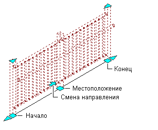 Демонстрация ручек перил "Начало", "Конец", "Положение" и "Смена направления"