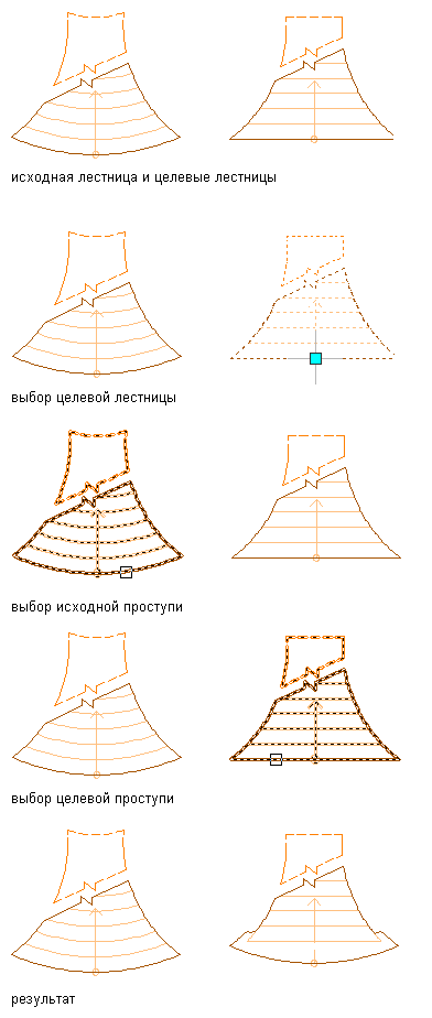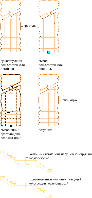 Эта процедура используется для преобразования проступи пользовательской лестницы в площадку или наоборот.