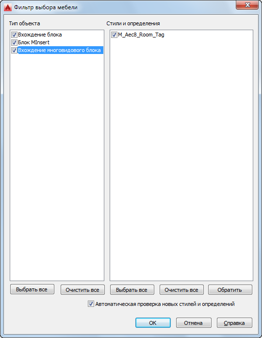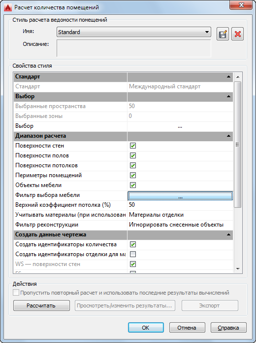 Если новые стили и определения добавляются на чертеж после расчета количественных характеристик помещений, этот параметр определяет, что новые стили и определения будут автоматически включаться в следующий расчет. По умолчанию это параметр включен.