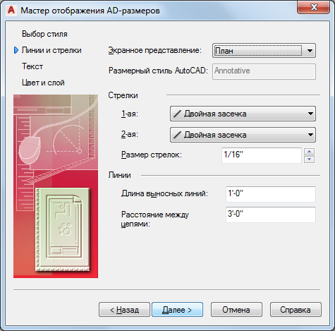 Изменение свойств стиля с помощью мастера стилей AD-размеров