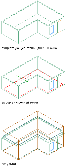 Отдельно рассмотрим процедуру формирования ассоциативного 2D или выдавленного 3D пространства на основе внешних контуров объекта на чертеже. В данном случае внешний контур объекта будет использоваться в качестве границы нового пространства. Например, если формировать пространства на основе контуров стен, граница пространства будет проходить по внешнему контуру стен.