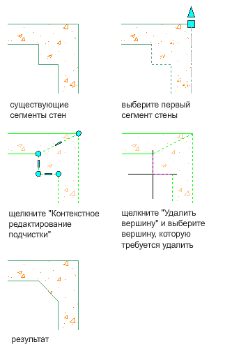 Данная процедура применяется для редактирования пересечения стен путем удаления вершины из компонента.