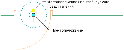 Для аннотативных объектов, например, марок двери, теперь имеется ручка "Местоположение представления масштаба". Эта ручка служит для изменения положения текущего экземпляра масштабируемого представления. Ручка "Положение" используется для изменения положения сразу всех масштабируемых представлений. Если для определенной марки поддерживается только одно масштабируемое представление, отображается только ручка "Положение".