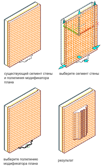 Данная процедура используется для создания модификатора поверхности из разомкнутой полилинии. Можно вычертить полилинию на месте, предназначенном для модификатора поверхности, либо можно спроецировать создаваемый модификатор на стену. Полилиния не должна быть замкнутой.