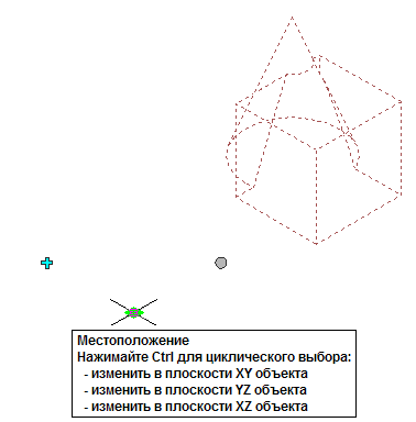 Эта процедура используется для изменения местоположения композиционной группы с помощью ручки положения. На виде "Модель" ручка положения имеет три режима редактирования: "Редактировать объект в плоскости XY", "Редактировать объект в плоскости YZ" и "Редактировать объект в плоскости ZX". Режимом редактирования по умолчанию является редактирование в плоскости XY. На виде "План" функция ручки положения ограничена перемещением в одной плоскости.