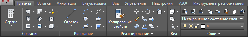 - Статические вкладки доступны вне зависимости от того, какие объекты выбраны в области чертежа. Команды на этих вкладках ранее располагались в меню и на панелях инструментов.