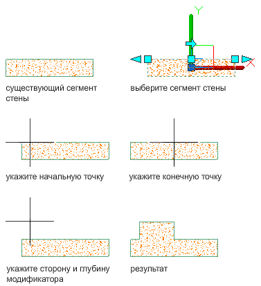 Данная процедура используется для того, чтобы добавить к стене модификатор поверхности того же стиля, что и существующий модификатор поверхности. Модификатор можно применять к одной или к обеим сторонам стены или компонента. Левая и правая стороны стены определяются по отношению к начальной и конечным точкам стены.