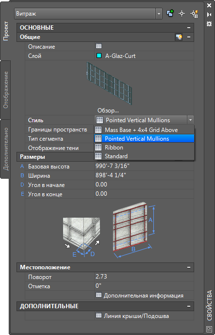 Данная процедура предназначена для того, чтобы выбрать другой стиль витража из палитры свойств.